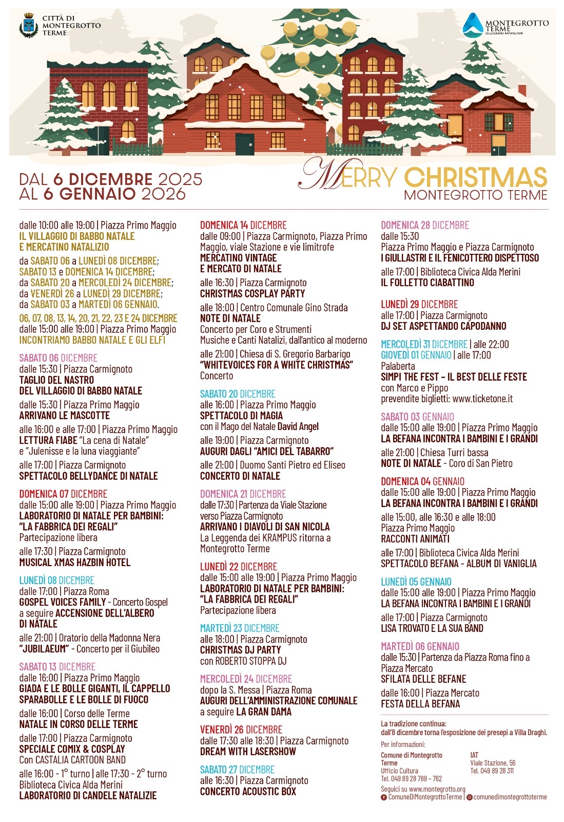 Montegrotto Terme si prepara a vivere un periodo natalizio intenso e coinvolgente, con un calendario di appuntamenti...