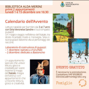 Un calendario ricco di appuntamenti natalizi per grandi e piccini animerà il Centro Civico Biblioteca Alda Merini...